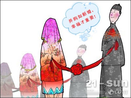 “一对好青年,恋爱结婚了!”在潍柴动力并购德国凯傲集团新闻发布会上,谭旭光以此幽默的语言描述这一历史性重大事件。相比传统印象中商场征战的冷漠无情,这一比喻无疑多了些许温情,也形象地说明了并购的原则――各取所需,双方共赢。但中国工程机械商贸网记者认为,还需引用另一句话加以警醒:婚姻是爱情的坟墓。许多看似美满的结合,经过无数鸡毛蒜皮的纠缠后往往遗失掉最初的美好,在“相看两相厌”之后,最终分道扬镳。